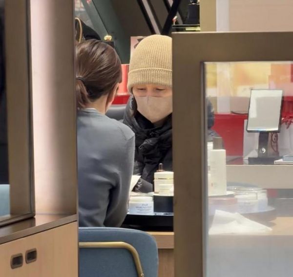 彼时的袁泉正站在护肤品柜台前,脑袋微微前倾,听得格外认真,销售小姐姐指着瓶瓶罐罐介绍的模样,像极了咱们普通人做功课的样子。