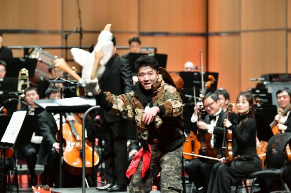 随后,享有十大圆舞曲美誉的《假面舞会》圆舞曲悠扬奏响,仿佛将观众带入了一个神秘而浪漫的舞会现场。而节奏明快、活力四射的《狩猎波尔卡》则带来了惊喜互动——打击乐声部长李晨啸化身猎人,随着手中的“枪声”响起,各种可爱的玩具接连被“击中”掉落在舞台上,又被观众席间各个方向的观众们“捕获”,大人、孩子们欢笑声此起彼伏。