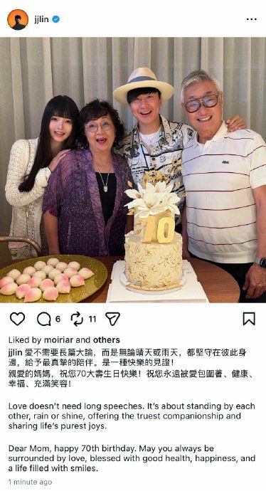 44岁林俊杰官宣恋情,带女友为母亲庆70大寿,女友紧挨未来婆婆