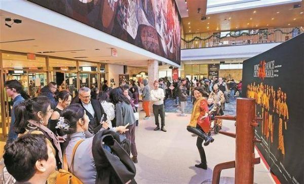 当地时间12月28日,大批多伦多观众冒雨前来观看舞剧《咏春》,并在背景墙下留下趣味横生的合影体验。