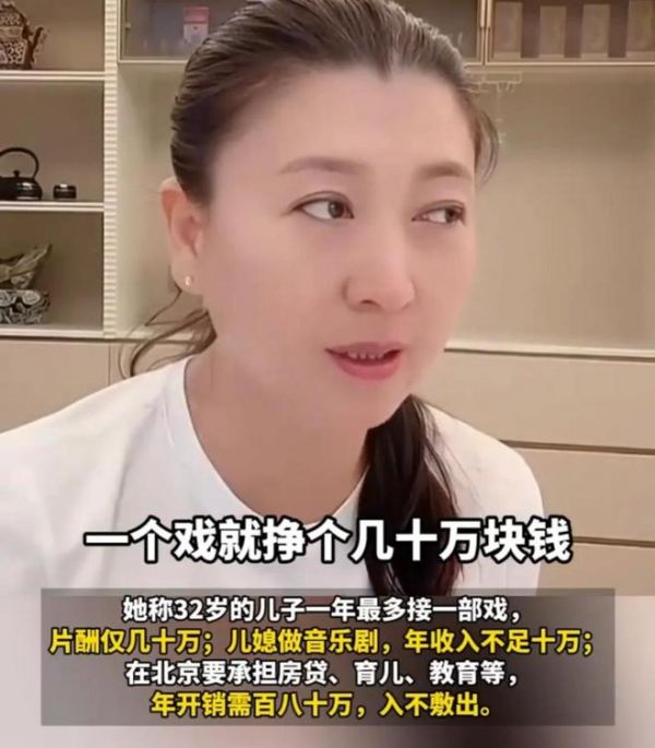 镜头里的她眉头拧成一团,语气里满是委屈,对着屏幕跟网友诉苦:“我家小子那小家庭,一年没个百八十万根本转不开。他一年就接一部戏,也就挣几十万,儿媳工资又低,这日子过得太费劲了。”