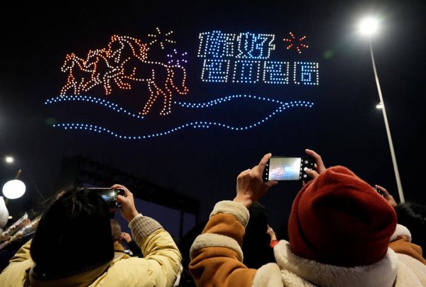全国各地大年初一上演焰火秀:烟花“飞龙”同框 流光溢彩点亮夜空