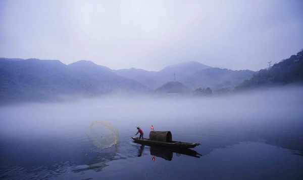 最后两句则描绘了日出后的景色。随着太阳升高,渔翁回头望向天际,山间的白云舒展,江水波光粼粼,仿佛一切都在悠闲自得地流动。这两句既是写景,也蕴含着诗人此时内心的宁静与舒适,带给读者一种清新、平和的感觉。 尽管《渔翁》没有《江雪》那种空灵的气质,但它在色彩的呈现上更为丰富,诗风也显得更加幽远和深邃,散发出一种清新、飘逸的氛围。可以说,这首诗在柳宗元的创作生涯中独具特色,千百年来依然让人陶醉。 柳宗元在805年到815年之间的十年,正是他生活的低谷期。由于参与了永贞革新,他被贬到远离京城的永州担任司马,命运的剧变使他处于人生的困境。然而,逆境却激发了他创作的热情,在这一时期,他创作了大量的诗文,其中包括了《江雪》和《渔翁》这两首充满魅力的诗作。 总体来说,柳宗元的才华不仅在《江雪》这首家喻户晓的诗中得以展现,《渔翁》也同样体现了他在自然景色上的独特视角和细腻的描写技巧。这首诗通过对日常生活的观察,展现了渔翁安闲自得的生活方式,仿佛带领读者走进了一幅山水画卷,令人陶醉其中。