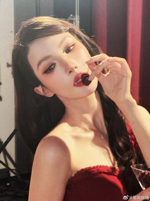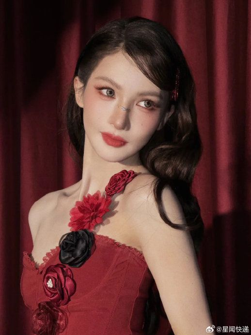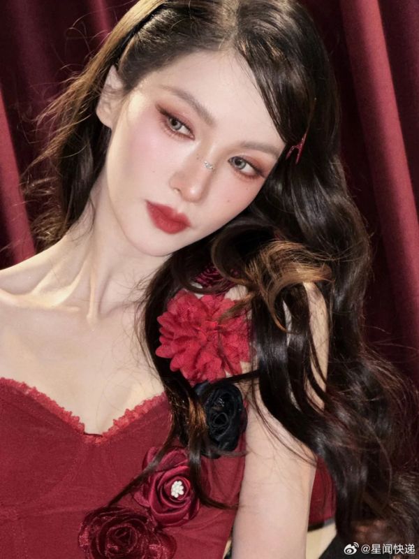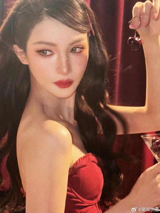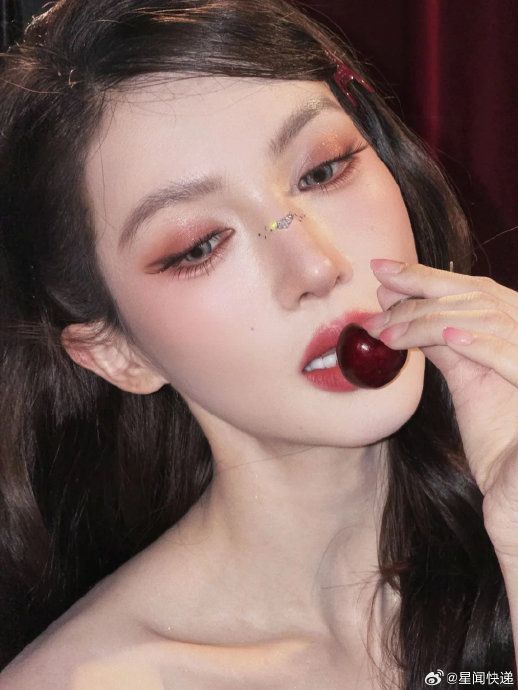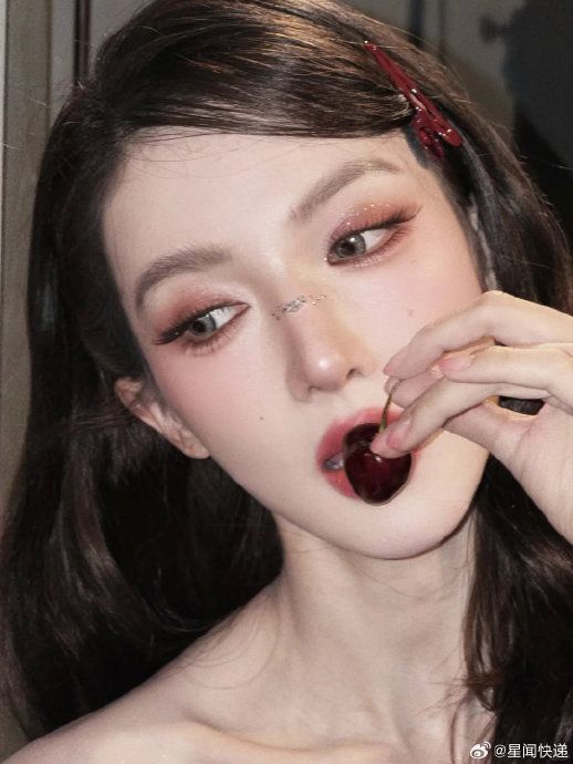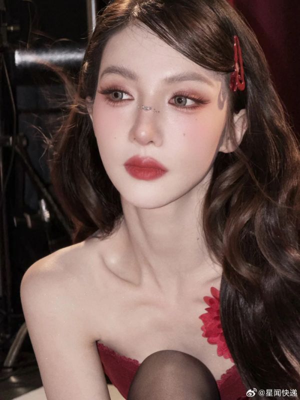 #金晨 网红妆#金晨这身红吊带+黑亮片外套+短皮裤黑丝,明明是绝杀性感配置,结果被妆容拖后腿拖到离谱!浅到没存在感的眉毛,超大直径美瞳,脸白得像糊了十几层粉,再配个突兀大红唇,远看近看都怪怪的,到底是哪个化妆师的手笔啊,把明艳大美女搞成这样