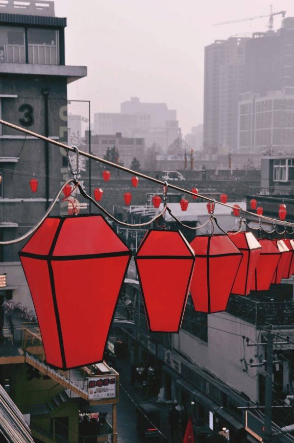 老菜场的这抹红,蕴含着我们的匠心与深情。自六号楼绵延至二、三号楼的三条灯线,取意“三生万物”,寄托着对生机、繁荣与万象更新的美好期许;