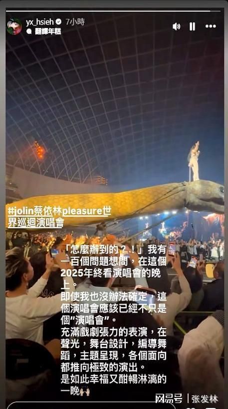 谢盈萱近看「蔡依林站蛇头」从面前经过。 震惊:这不只是演唱会