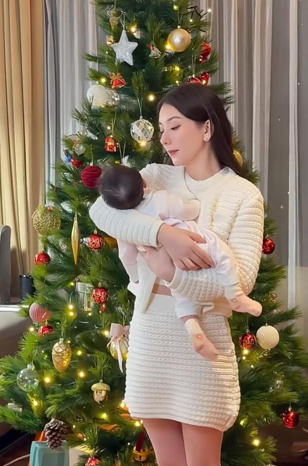 从背景来看,应该是在方媛的豪宅中,前不久就是圣诞节,方媛也在家里布置一颗硕大的圣诞树,上面挂着彩灯和礼物装饰,树顶最上方还安装着一颗很大的七角星。