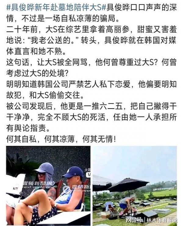 网友在大S墓地偶遇具俊晔,墓园工作人员:他每天都会去