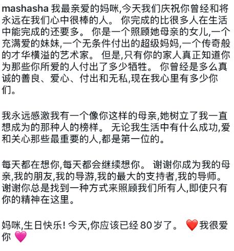 郑佩佩女儿原子惠发文悼念:母亲是我认识的最无私的人