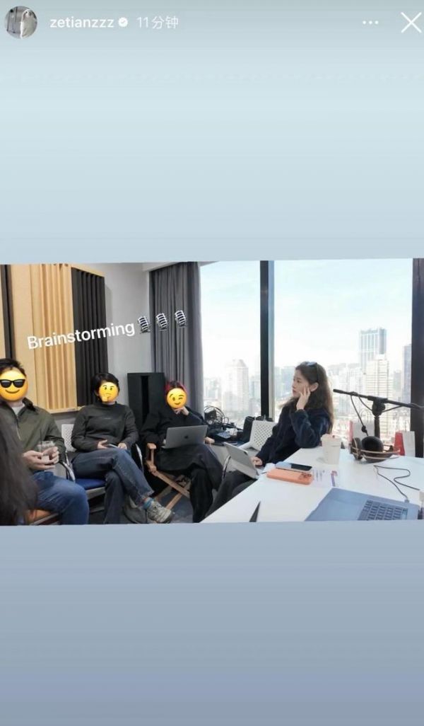 1月10日,章泽天在社交平台晒出工作照,附文“头脑风暴”,透露自己要进军播客届了。