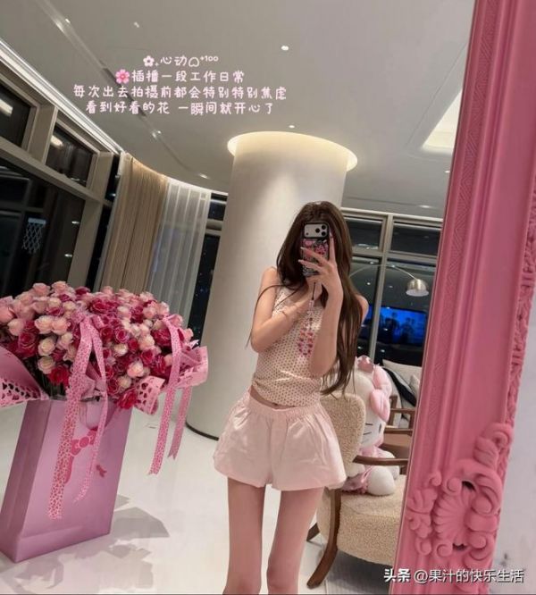 不得不说,26岁的懒懒真的很漂亮,皮肤白皙,身材也非常好!懒懒身后的玫瑰就是王思聪送的吧!懒懒直言,自己工作觉得心情不好的时候,看到好看的花就会开心,不得不说,王思聪还真的很会哄女朋友呢!