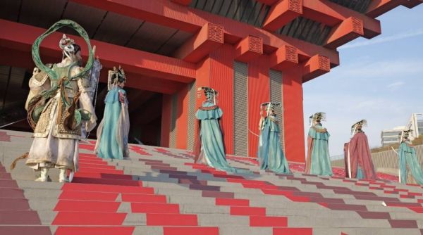 1月14日,舞剧《永乐未央》现身上海的城市空间,将剧中精华片段——“朝元图‘神仙登场’”带到了中华艺术宫、西岸梦中心与豫园,沉寂七百年的永乐宫壁画在都市中悠然苏醒。