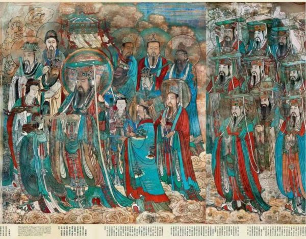 这幅长达97米、高4.4米的巨制,描绘了道家诸神朝拜元始天尊的盛大场面。画中290位神祇分列东西,以8位主神为中心,构图严谨而平衡,衣冠服饰与神态面貌无一雷同,堪称中国古代人物画的巅峰之作。