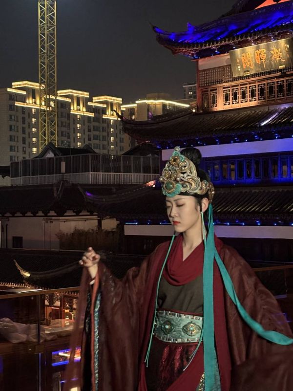 在豫园的“海上梨园”,盛装而来的舞者们,以古韵盎然的凝晖阁为背景,依次入画。灯光影影绰绰,舞者翩翩如仙,构成一幅流动的壁画。