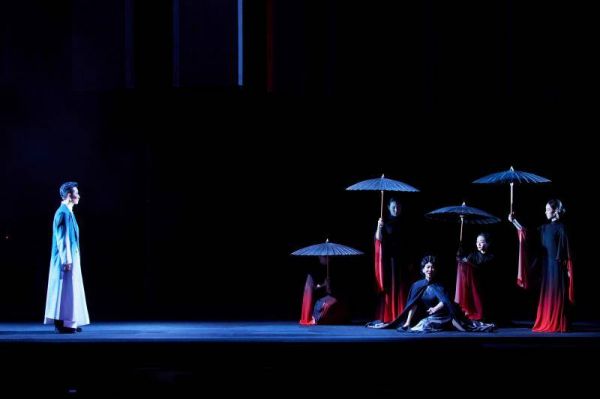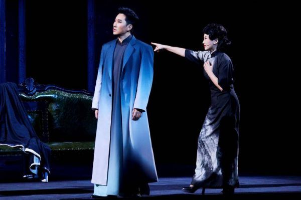在舞台呈现上,该剧以京韵革新构建全新观演体验。音乐创作上,北京曲剧功勋作曲家戴颐生以北京曲剧传统单弦牌子曲为基础,实现“一人一腔”,结合传统与西洋乐器混编,开篇庙堂合唱与结尾女声伴唱形成呼应,高潮段落颇具震撼力;舞美借鉴“一桌二椅”传统,以几何立体框架搭配旋转舞台,半透明纱幕通过光影传递人物心绪;灯光以冷暖色调区分场景氛围,服化道则精准还原民国风格,通过材质、纹路等细节区分人物身份,歌队身兼置景与表演双重身份,全方位营造沉浸感。