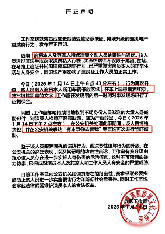 那天早上成毅的车停在小区外面,被人用红漆喷满车身,还写了些难听的话,工作室随后发表声明,说这不光是车子被破坏,连他和家人也常被跟踪,开车时被强行拦下,就连去哪里都被人提前知道,警察抓到那人以后,对方态度还很嚣张,直接说有本事就去告他,事情曝光之后网上讨论特别热烈,阅读量超过两亿,但热搜一直上不去,很多人觉得这情况很不正常。