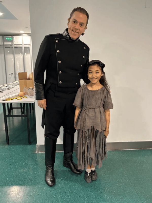 2025年8月的一天,妈妈订票的网站弹出一条推送,《悲惨世界》世界巡演中国站要招募扮演小珂赛特的演员,要求是身高在1.37米以下、视觉年龄八九岁、能充满感情地演唱《Castle on the Cloud》的小女孩。我说,我可以试试吗?我5岁就会唱这首歌了,而且《悲惨世界》的电影和音乐剧我都看过好多遍。就这样,我投递了唱歌视频参加海选,很快接到面试通知。面试地点在上海大剧院,一共有近千名孩子参加,本次巡演驻团导演Nikki和音乐总监、选角导演专门飞来面试。选拔很严格,不让自我介绍太多,只按要求唱歌、表演和回答问题,第一天只筛选出24个孩子,第二天再进行多重考核,留9名小朋友录像,他们要把录像寄到英国《悲惨世界》出品方总部做最后的挑选。