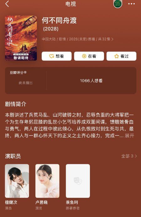 #檀健次 何不同舟渡#相柳和上官浅?!檀健次的一番古偶来了!《何不同舟渡》搭卢昱晓,看设定是将军x女间谍?檀健次之前演过相柳,卢昱晓演过上官浅,无须路透已经可以提前剪前世今生了