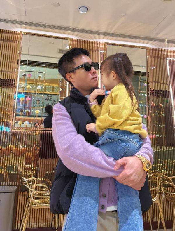 父女俩吃完冰激凌后,杜淳便把女儿抱在怀中,小蛋饺与父亲杜淳紧贴着彼此的脸,她的脸上露出笑意,侧脸很是可爱。