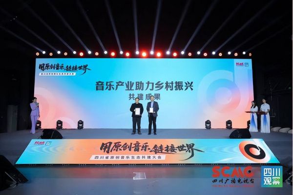 大会现场,四川观察与澳门直播协会举行文化国际推广平台共建赠牌仪式,澳门直播协会会长、澳门中华文化艺术发展协会徐其蓓、与四川观察CEO黄敏共同见证,双方将携手推动四川原创音乐走向澳门、辐射全球,助力中华文化“出海”。在乡村振兴领域,四川观察向中国乡村发展基金会移交歌曲《归来的风》授权书,该歌曲将作为基金会“宜居家园”项目主题曲,基金会则向四川观察颁发“爱心合作伙伴荣誉证书“,实现音乐产业与公益事业的良性互动。