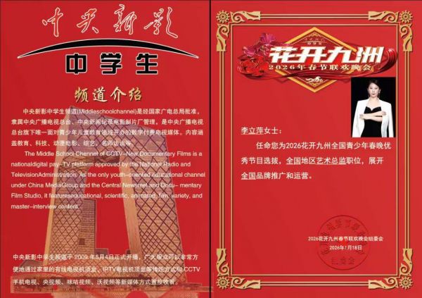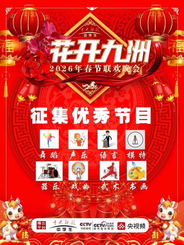 2026花开九州春节联欢晚会是中央新影中学生频道《花开九州》栏目主办,中央新影中学生频道是中央广播电视总台旗下专注青少年教育的数字电视频道,2026“花开九州”春节联欢晚会将为有才艺的老中青提供一个充分展示艺术魅力的舞台,旨提供看老中青艺术交流,通过艺术展演形式,展现新时代老中青的精神风貌,弘扬文艺爱好者的集体意识,民族精神和爱国主义情感。