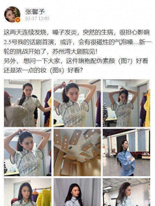 张馨予连续两天发烧、嗓子发炎!坚持穿短旗袍排练话剧,素颜真美