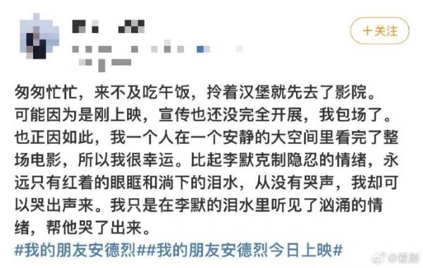 #幸好是我一个人包场看安德烈#有包袱的人一定要包场看安德烈,别问我怎么知道的,哭到披头散发狼狈到极致,后半程眼泪就没停过,又虐又上头的酸爽感直接拉满,看完出门漫天飞雪,直接和电影里的名场面联动上了,瞬间共情拉满