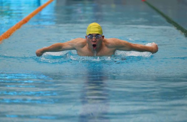 游泳是章新宏日常健身的内容之一。