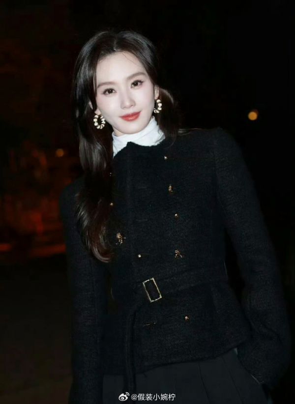 #刘诗诗活动路透#身穿CELINE 2026春夏系列黑色修身夹克与阔腿裤,形成利落的全黑Look,手拎品牌红色Crystal Pouch手袋为点睛之笔,与广告片单品一致强化节日氛围。