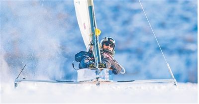 冰帆又称“冰上快艇”,是近几年兴起的户外运动项目。与寻常帆船比赛不同,冰帆赛的场地并非海面,而是一片光滑如镜的冰面。冰帆的独特之处在于船体下方配置了冰刀,选手们操纵帆具,仅凭自然风力,就能在冰面上扬帆。相较普通帆船,冰帆的操作更为简易,冰刀相当于轮子,风帆相当于发动机。比赛场地宽200米以上、长700米以上,风力平稳保持在2级以上,赛时选手躺在帆船中以减少风阻。