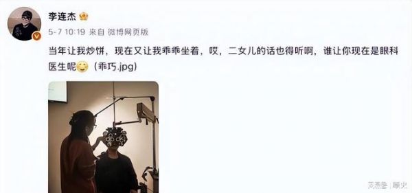 身体一折腾,李连杰的心思好像也转了弯。5月他去医院检查眼睛,发照片说二女儿的话得听,谁让她是眼科医生。