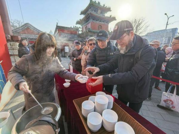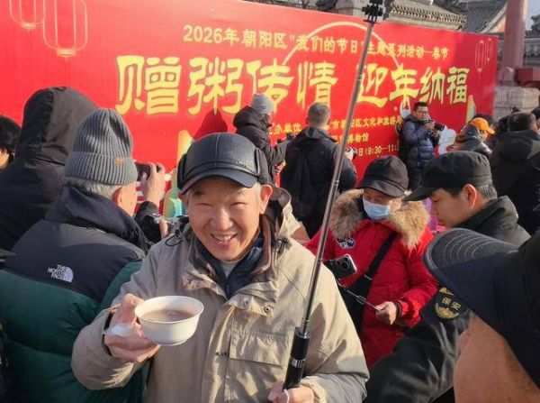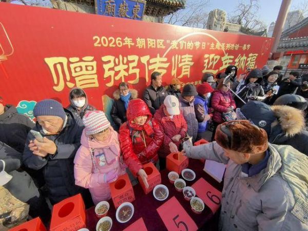 1月26日,农历腊月初八,在北京民俗博物馆(东岳庙)南门广场,“赠粥传情迎年纳福”舍粥活动如期举行。千余碗熬制数小时的香甜腊八粥免费赠予市民,承载着民俗传承与新春祝福,正式拉开了2026年第二十五届北京民俗文化节的序幕。