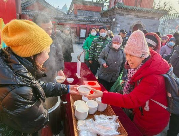 北京民俗博物馆腊八送粥,延续传统 传递文化