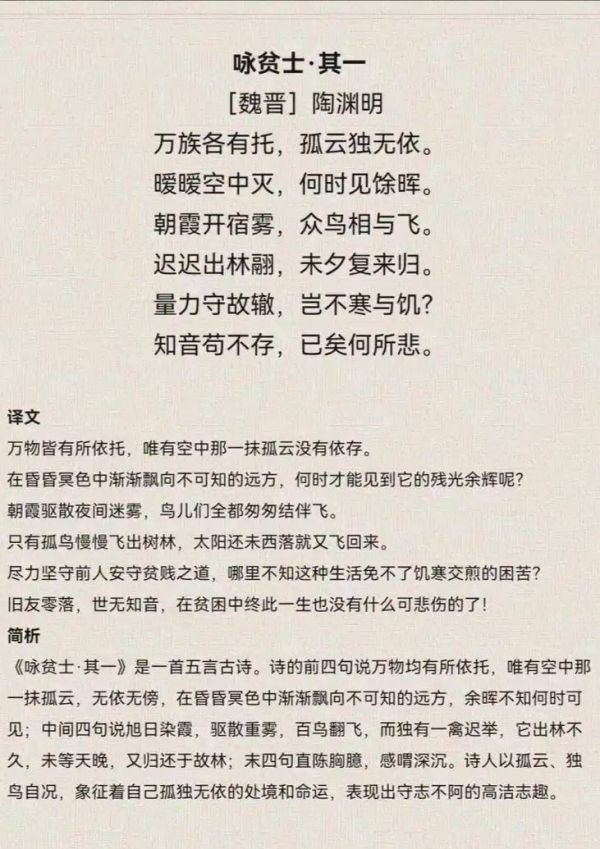经典作品有其时代特色,并不能用现在的眼光完全审视。《诗经》编订后,其中的词句大多是四言,不能和现在没有韵律的当代诗媲美。很多解释《诗经》的人把《诗经》解释得很美,其实只是误解误读。《诗经》的语句并不一定很美,只不过解释和翻译的人展开了浪漫的想象。倘若把《诗经》中的诗和唐代的诗歌进行对比,就会发现《诗经》中的诗简直就是简陋的,甚至有一些俚俗,不如唐代的诗亲切自然。可是《诗经》出现的年代,并没有唐代的诗歌,没有成熟的诗歌创作与发表体系,当时的文人能够从民间采集诗歌就算不错了,起码可以留下很多清新自然的诗。汉代的乐府也是如此,乐官能够到民间采集诗歌,能够让这样的诗流传下去,就算是功德无量。这样的诗算是那个时代的经典,当然汉代的赋也是不错的,只是铺张扬厉,夸张太过了,就让人觉得不是很实在。至于建安风骨和魏晋风度,也只是说了实话,或者说直抒胸臆,一扫六朝绮靡的文风,比起唐代诗歌仍然差了很大的火候。陶渊明的田园诗算是清新自然的诗,只不过没有唐代那种严格的平仄律。当然诗歌并不能完全被平仄律束缚,应该能够抒发诗人的理想,抒发诗人的感情,就算是表达不错的。