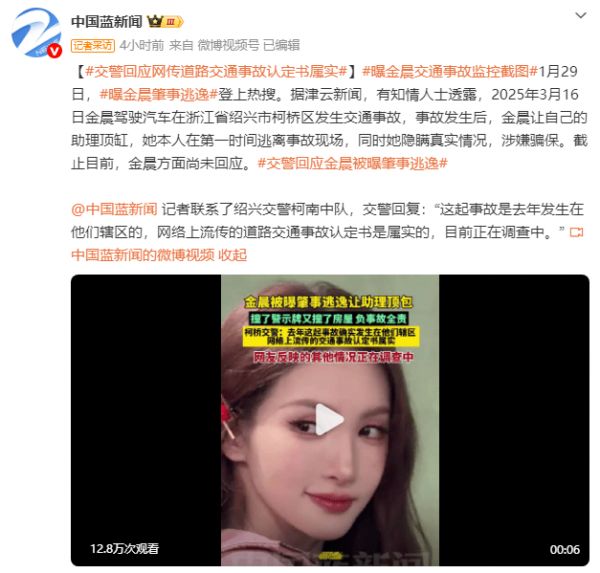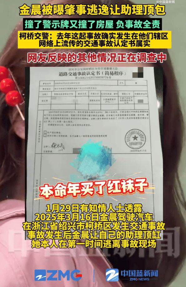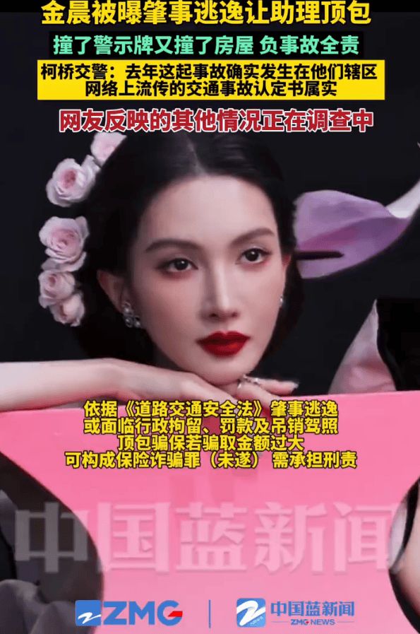 女星金晨被曝涉嫌交通肇事逃逸,最新回应