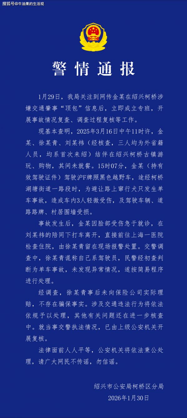 金晨肇事逃逸顶包的瓜发酵了几天,本人一直没有回应,本以为是假的,没想到警方通报了。