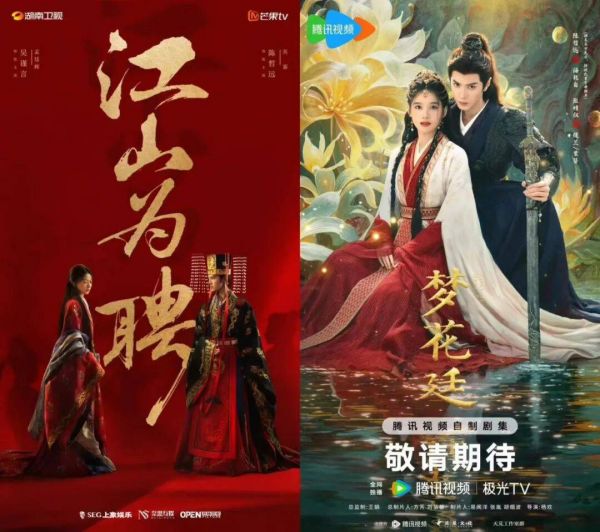 与此同时,与平台有合作关系的95后花、生,仍然在各种排列组合中,新变化是跨平台合作越来越多。比如,因为与爱奇艺合作较多而被称为“桃太子”的陈哲远,近期拍的两部古偶都是外戏,一部为芒果TV《江山为聘》,一部为腾讯视频《梦花廷》。