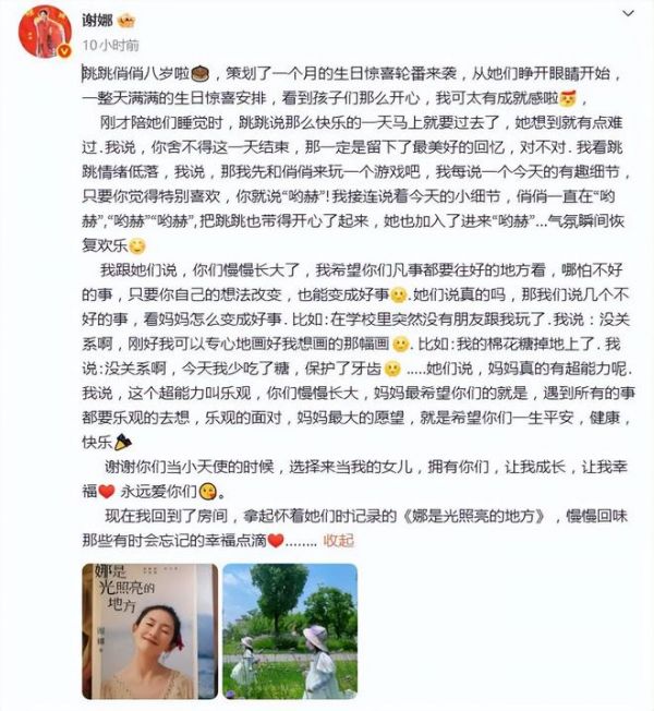 谢娜发文为双胞胎女儿庆生!曝夫妻相处细节,暖心对话彰显高情商