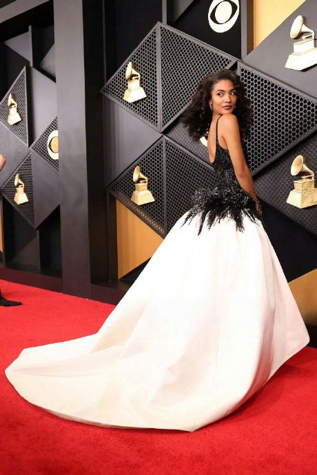 亮相第68届 #格莱美# 奖颁奖典礼的Olivia Dean,凭实力拿下最佳新人奖!身穿CHANEL 定制礼服,佩戴Cartier 高级珠宝,大气漂亮的一身造型,很有自己的风格魅力!这件黑白配色礼服和她的气质很配。#米拉服饰解析#