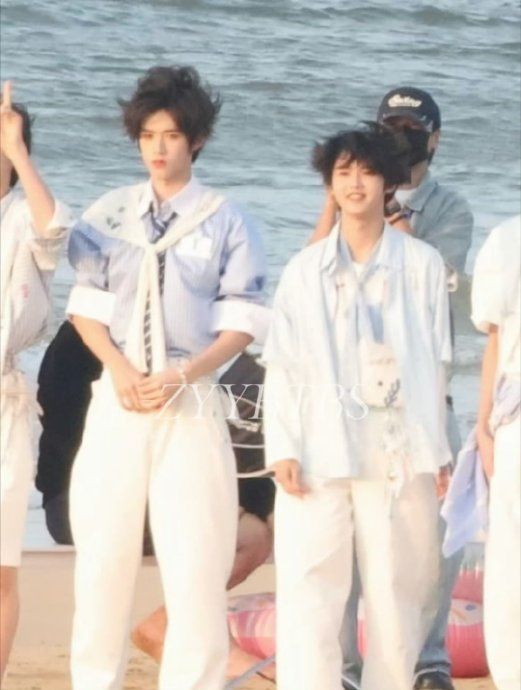 张奕然卷毛造型亮相海边拍摄,脸颊肉感十足