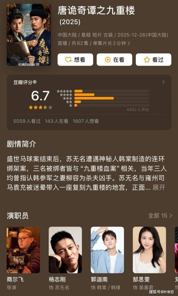总的来讲,是拍长剧时顺便做出来的小成本之作,豆瓣评分也仅有6.7分。