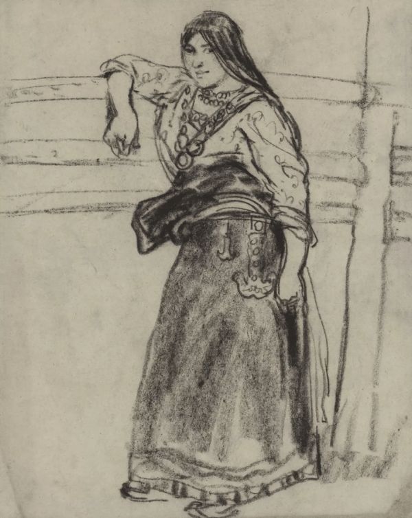 李震坚 倚栏藏女速写 1962年 浙江美术馆藏