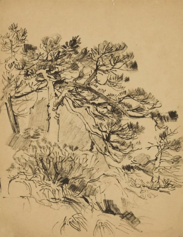 黎冰鸿 老松 23.2cm×17.5cm 纸本速写 年代不详 浙江美术馆藏