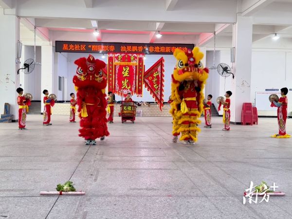 2月3日,东莞黄江镇星光社区喜庆堂内欢声笑语、锣鼓喧天,“醒狮跃春·油果飘香”非遗迎新年活动热闹举行,为社区居民送上一场有“味”更有“情”的迎春盛宴。