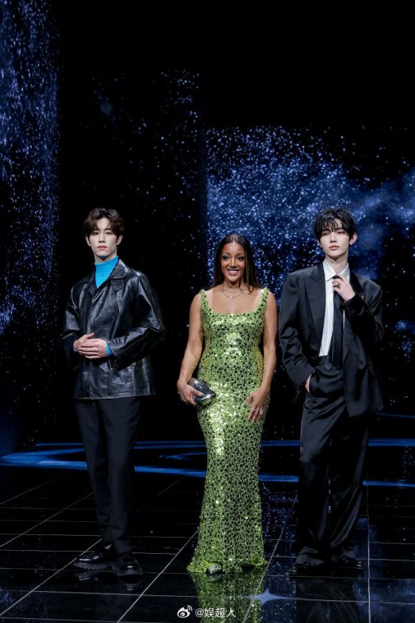 今天红毯上为歌手米奇·盖顿当翻译,在交换礼物环节帮忙和主持人沟通,完全是一个人打两份工来的