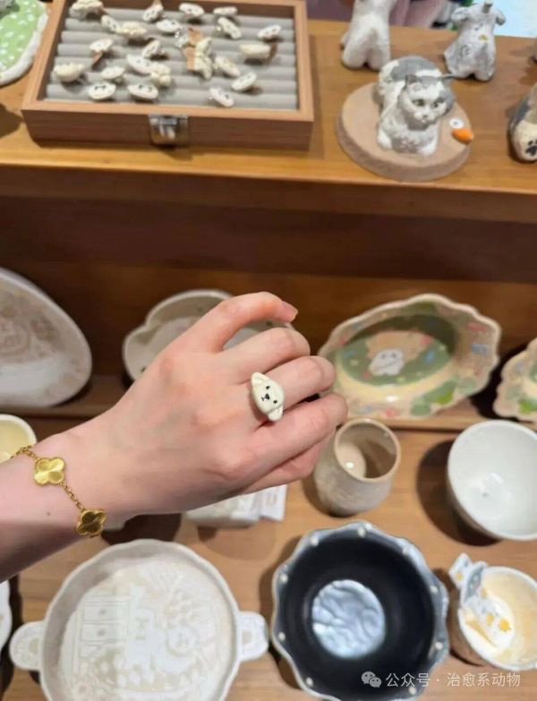还有朋友分享了自己的经历,说自己在景德镇也看到过这个戒指,当时觉得价格有点贵,心里纠结了好久,最终还是舍不得买,没想到最后这个戒指戴在了狗子的爪子上,这奇妙的缘分真是让人意想不到。