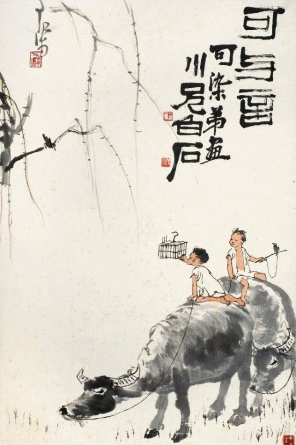 李可染画头牛卖450万,齐白石题字后却卖7750万,1个字600多万