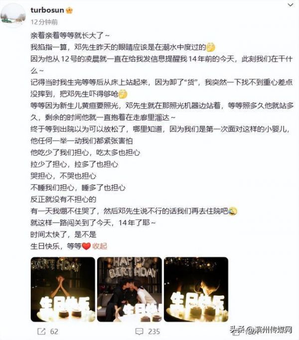 邓超发博为老婆孙俪庆生 卡点失败晚了一分钟