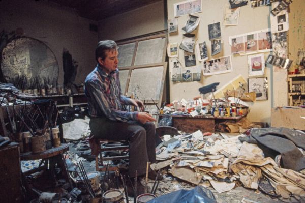 并非所有艺术家都会公开自己在创作时穿的衣服。在塞西尔·比顿为弗朗西斯·培根拍摄的照片中,他坐在画室里,周围一片狼藉,但身上并无一丝颜料。他的生活和工作都很混乱,无论是在情绪、身体,还是在心理上。但是,为什么这些没在他的着装上表现出来?