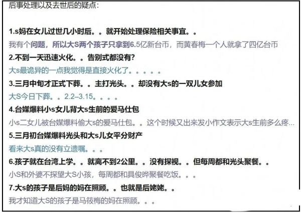 细节已经详细到具体每个时间节点,在做什么。关键是综艺节目播出后,包括小S在内的大S家人都默认了节目报道的内容。
